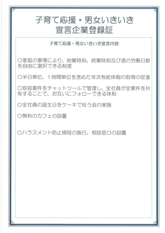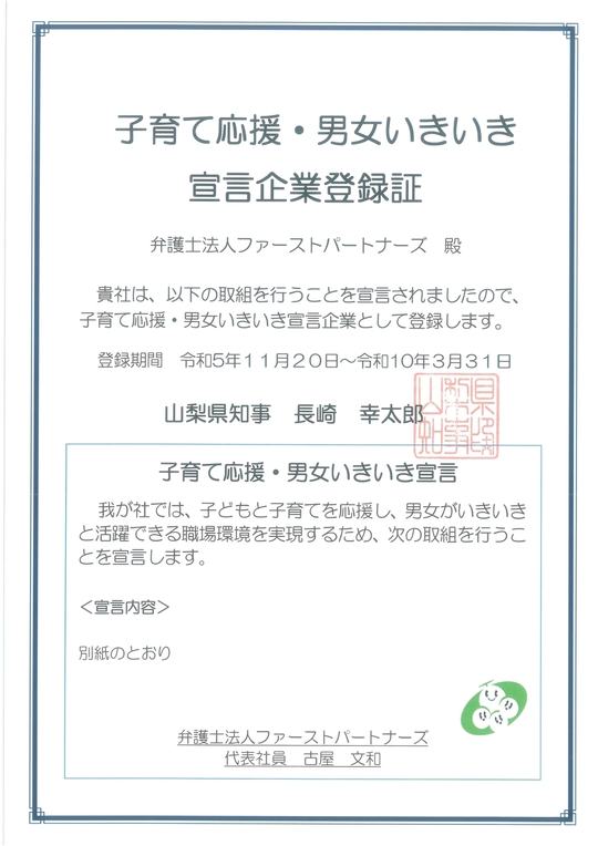 山梨県 子育て応援・男女いきいき宣言企業